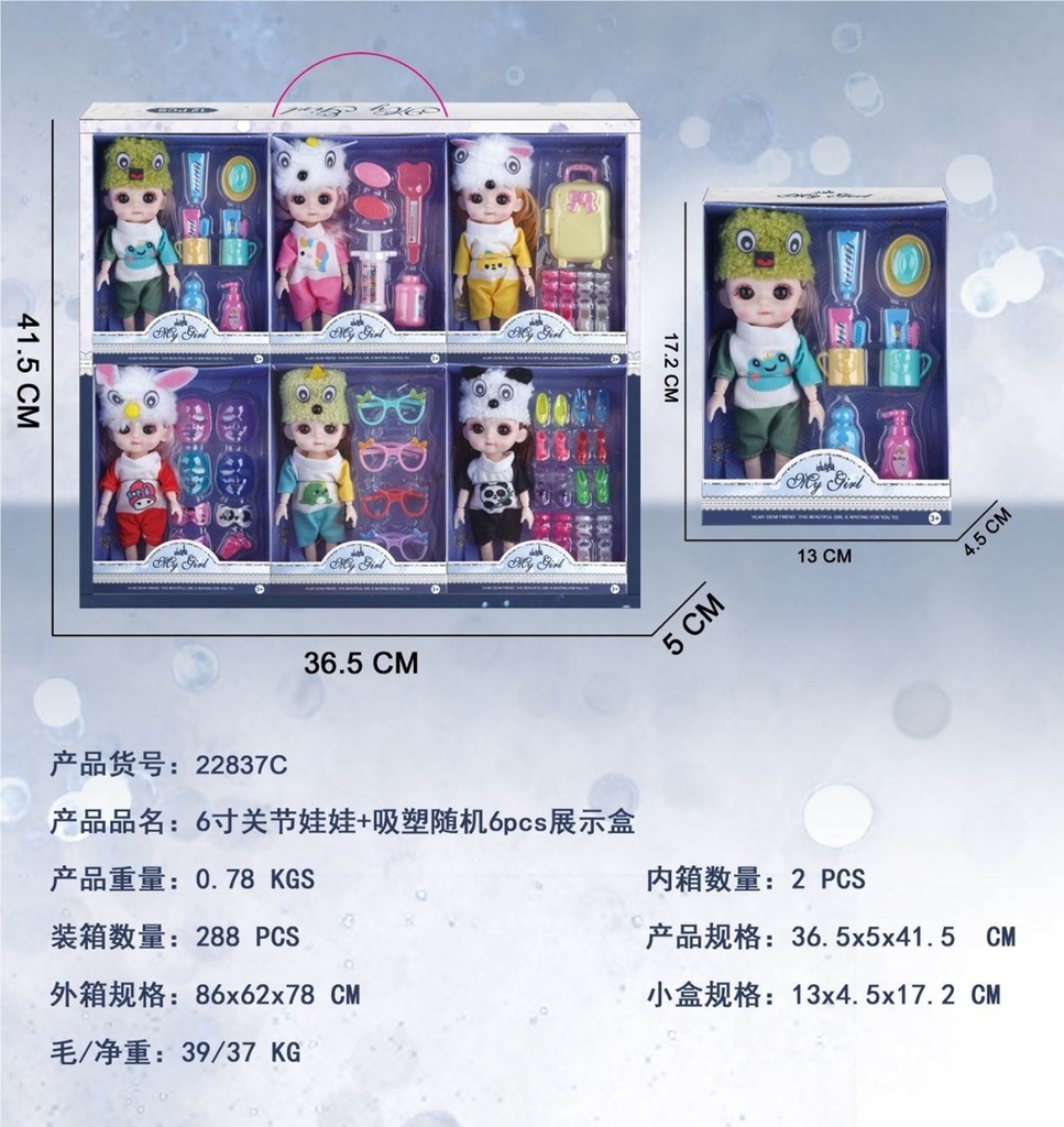 22837C HỘP BABY 6C KHỚP, MẮT THỦY TINH + MẮT KIẾNG, GIÀY, BÀN CHẢI, KIM TIÊM ĐỦ MẪU