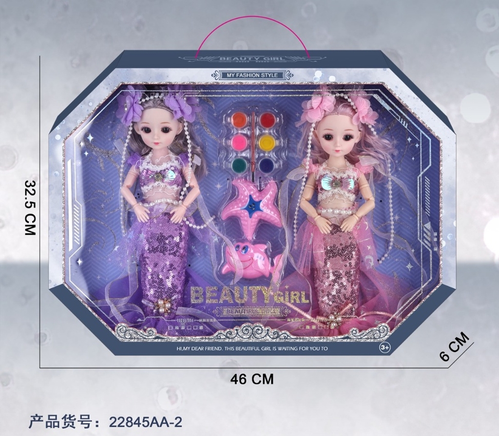 22845AA-2 HỘP BABY 2C NGƯỜI CÁ KHỚP, MẮT THỦY TINH + MÀU NƯỚC, SAO BIỂN