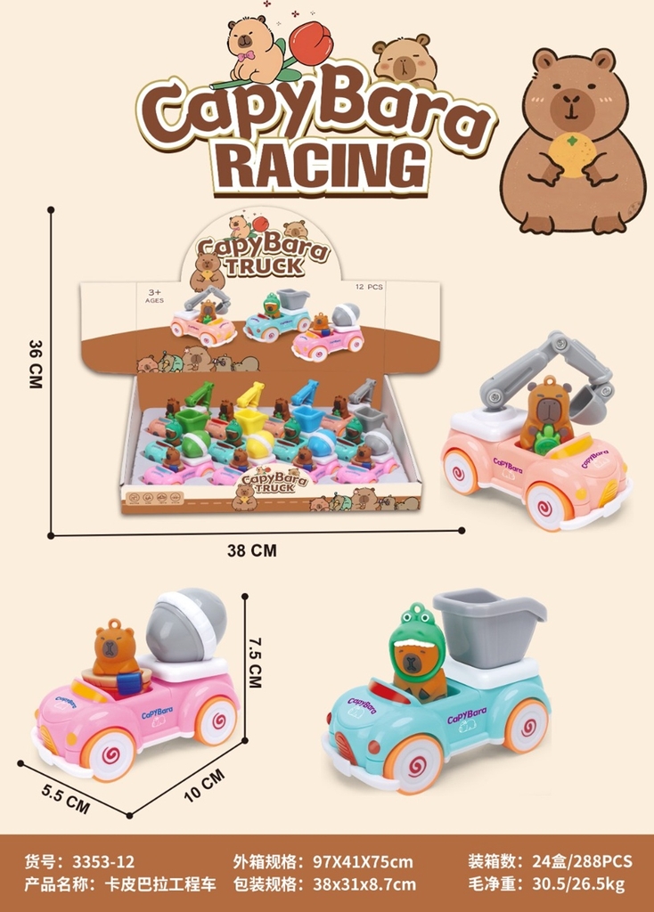3353-12 HỘP XE CÔNG TRÌNH CAPYBARA TRỚN 12C ĐỦ MẪU