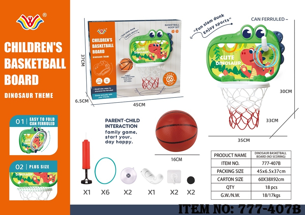 777-407B HỘP TRÒ CHƠI BÓNG RỔ KHỦNG LONG + THẢY VÒNG + 1C ỐNG BƠM