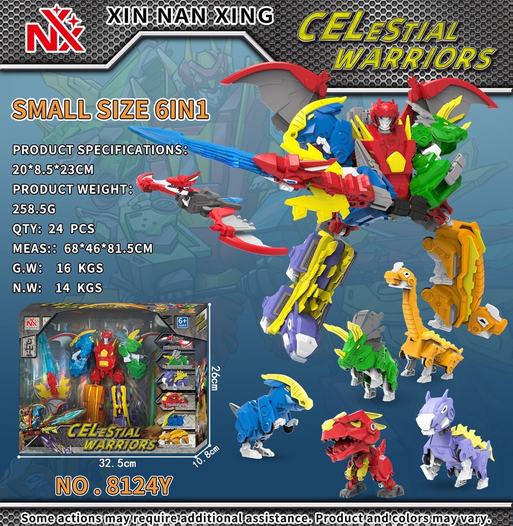 8124Y HỘP RÁP ROBO BIẾN HÌNH KHỦNG LONG ĐỦ MẪU + 1C TAY CẦM 6 IN 1