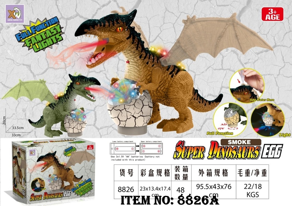 8826A HỘP KHỦNG LONG PIN ĐÈN CÁNH ÔM TRỨNG ĐÈN, PHUN KHÓI