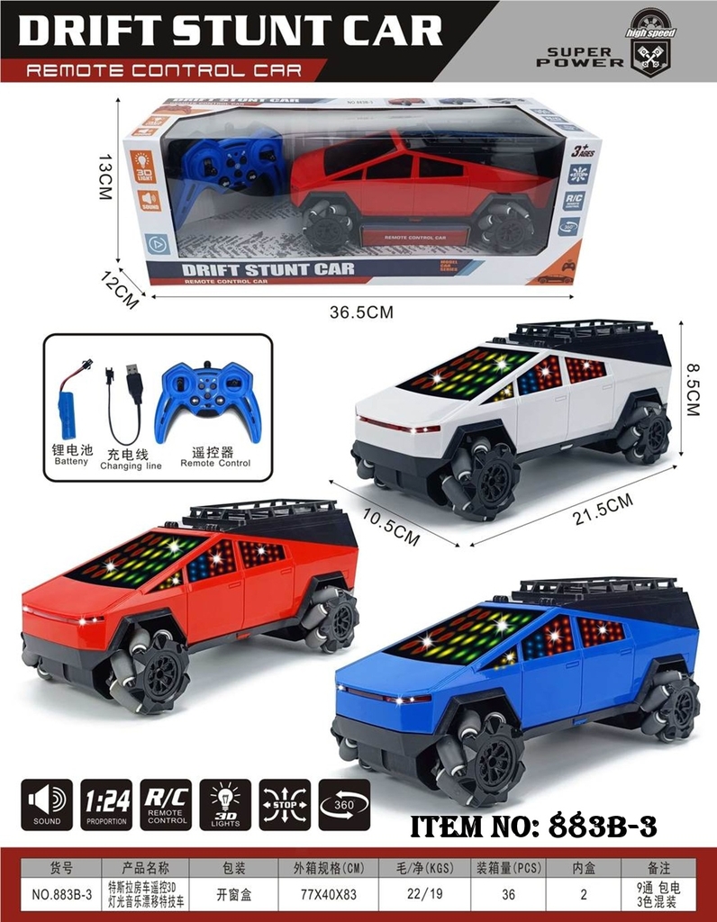 883B-3 HỘP XE HƠI ĐIỀU KHIỂN 7 ĐỘNG TÁC, ĐÈN LED 3D, BÁNH XOẮN, CÓ SẠC