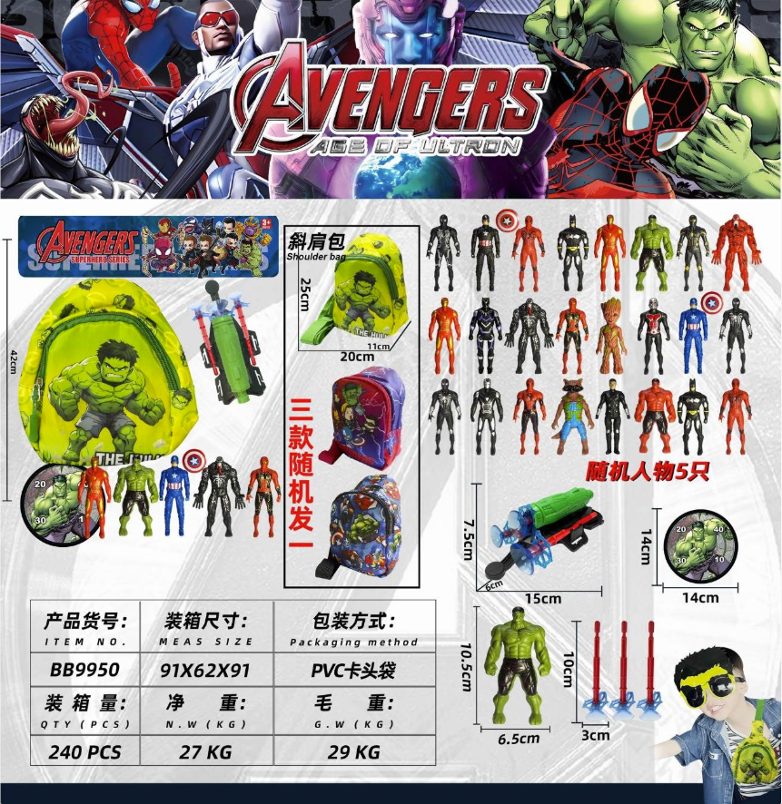 BB9950 TÚI BALO SIÊU NHÂN AVENGER + ĐỒNG HỒ BẮN HÍT + 5C SIÊU NHÂN