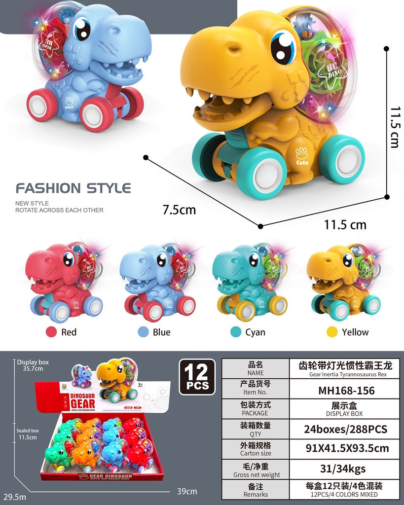 MH168-156 HỘP XE KHỦNG LONG PIN NÚT ĐÈN BÁNH RĂNG 12C