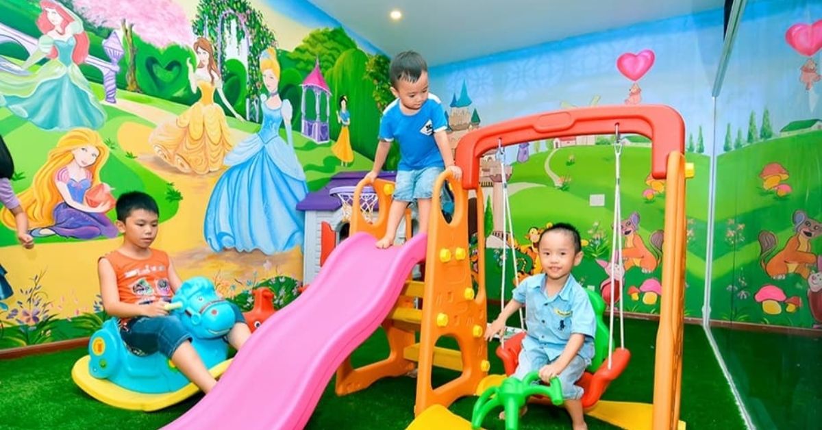 Cầu trượt trong nhà giúp bé vui chơi thỏa thích mà mẹ không lo nắng nóng.