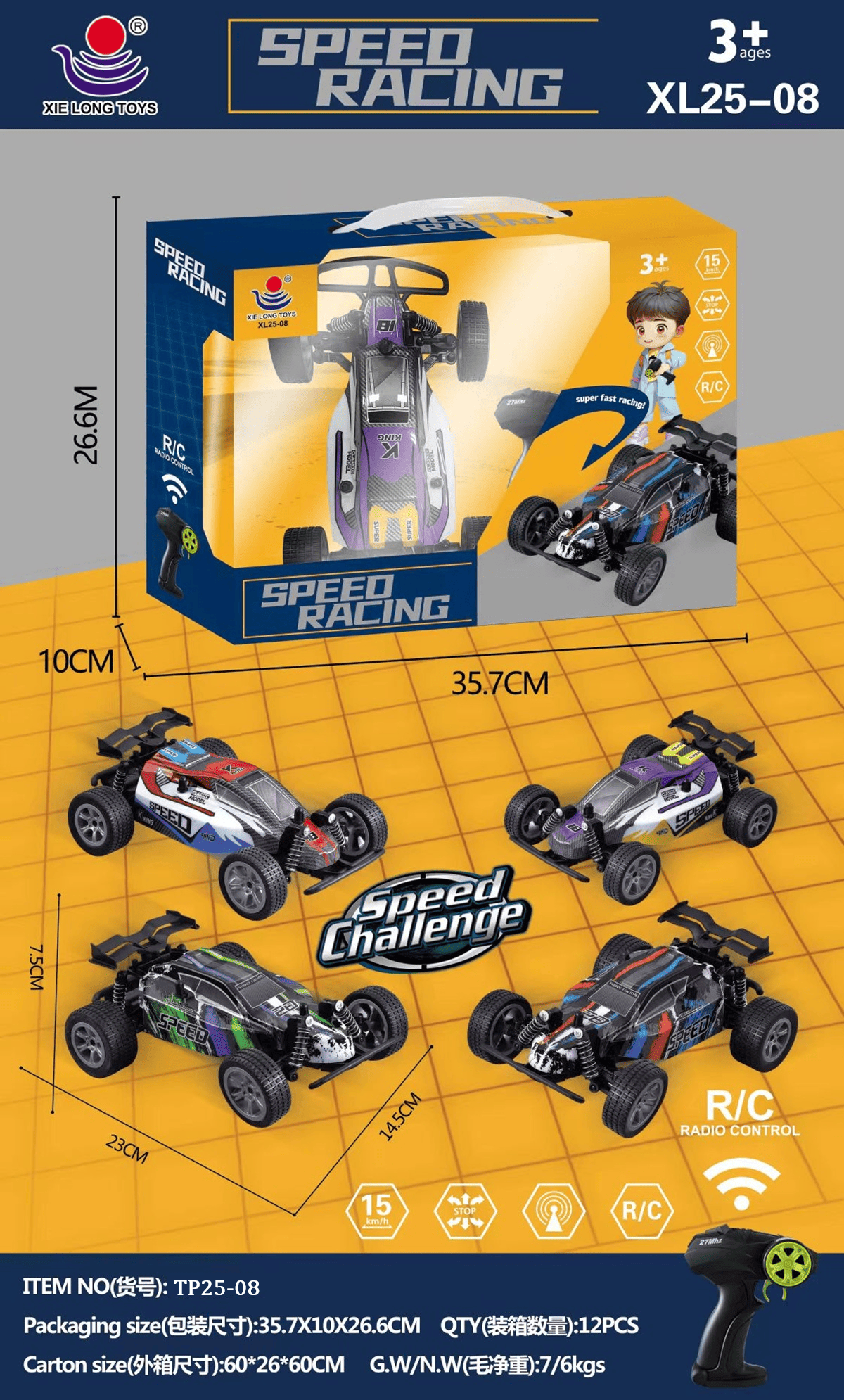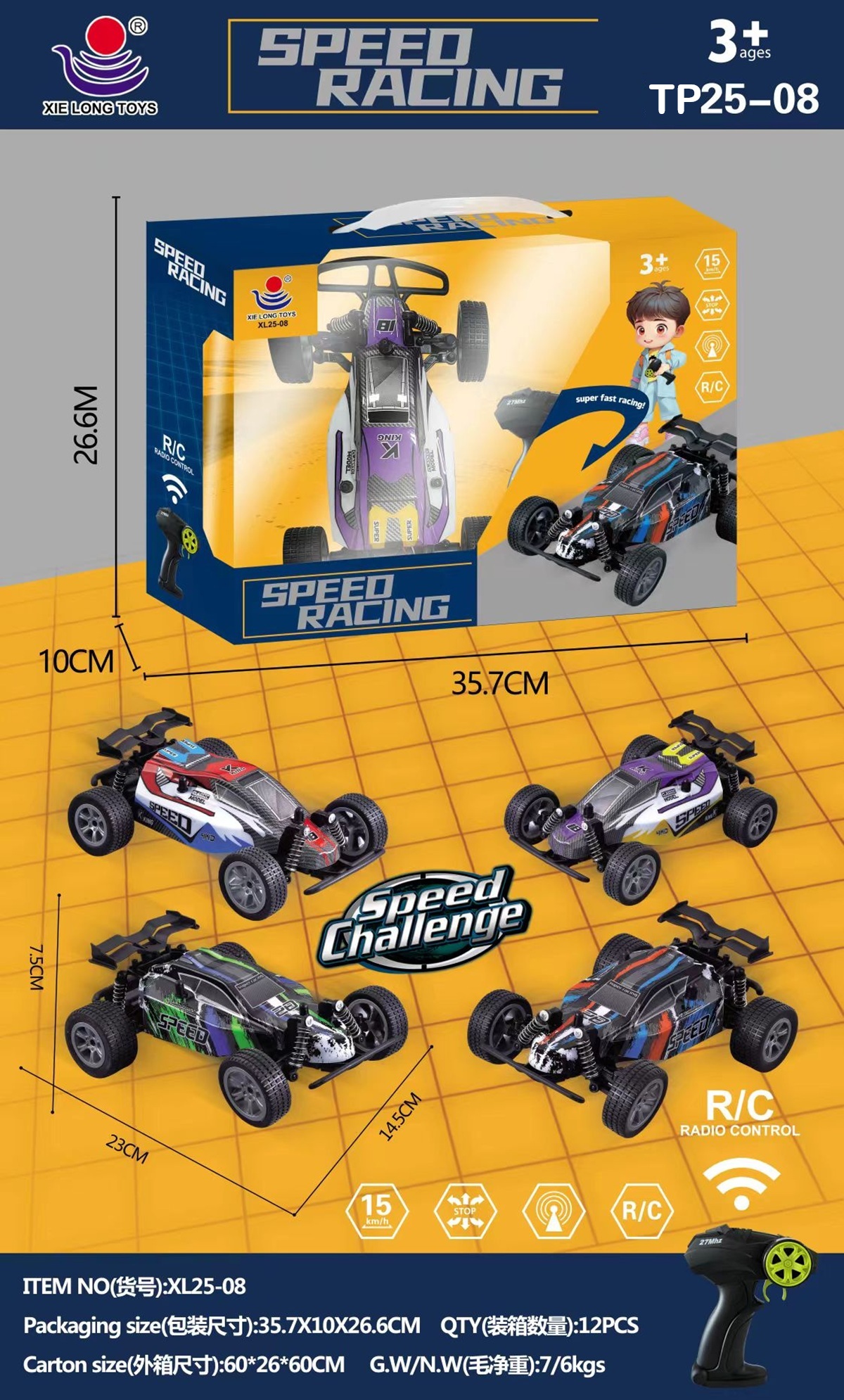 TP25-08 HỘP XE ĐUA ĐIỀU KHIỂN 7 ĐỘNG TÁC, CẦN GẠT XOAY, CÓ SẠC (TIẾNG VIỆT)