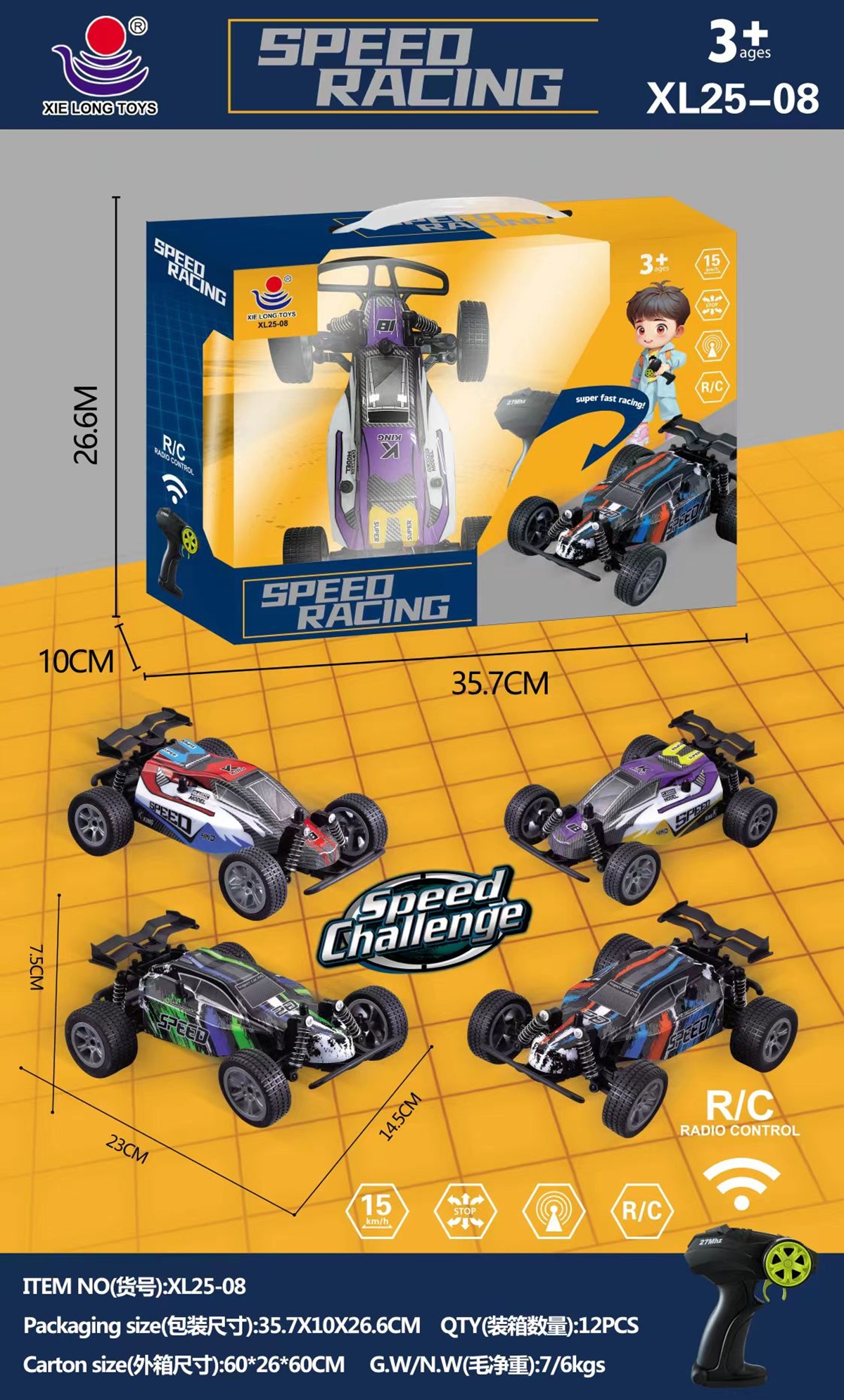 XL25-08 HỘP XE ĐUA ĐIỀU KHIỂN 7 ĐỘNG TÁC, CẦN GẠT XOAY, CÓ SẠC TP25-